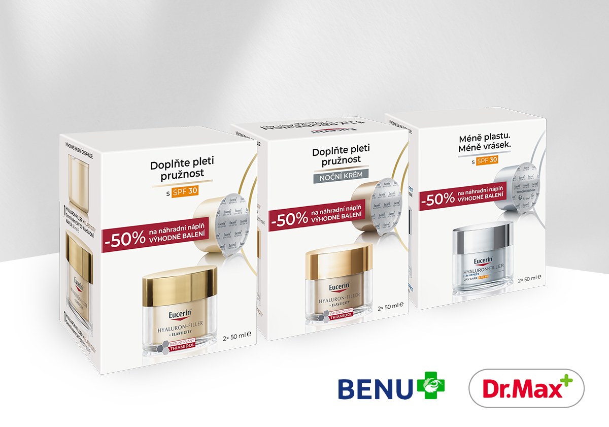 Využite októbrovú akciu v e-shopoch Dr. Max aj BENU a kúpte si obľúbené produkty z radu Hyaluron-Filler vo výhodnom premobalení štandardného krému a 50 % zľavy na náhradnú náplň. Praktické balenie, ktoré sa oplatí – šetrí vašu peňaženku aj životné prostredie.