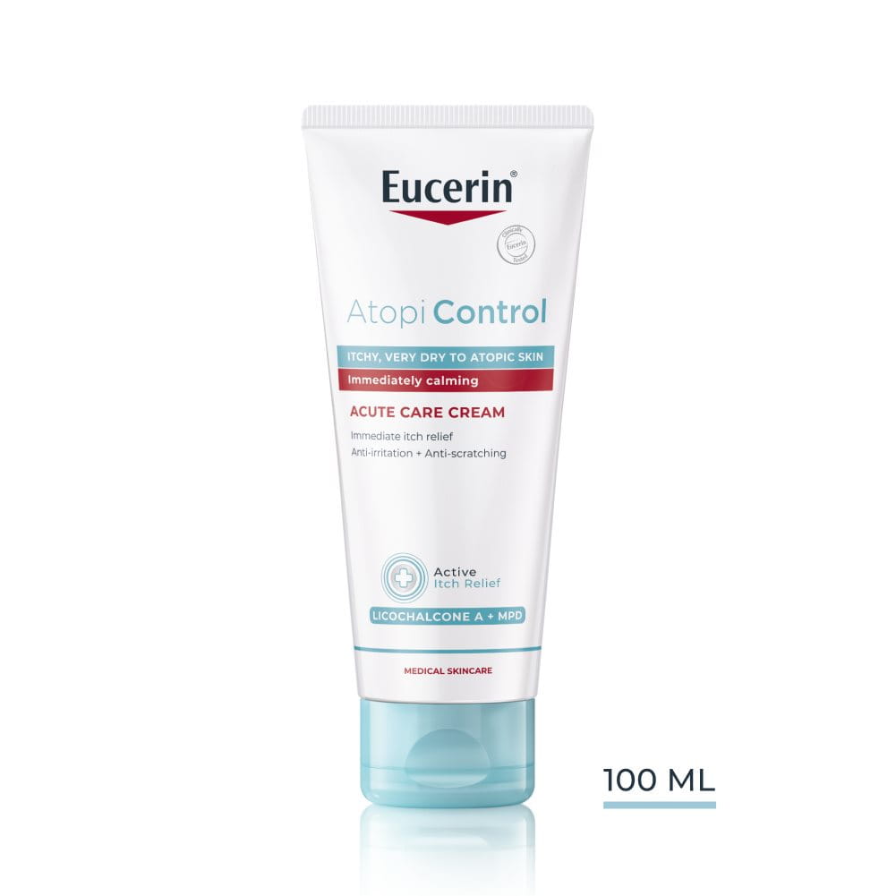 Eucerin AtopiControl Acute krém poskytuje intenzívnu starostlivosť pri vzplanutiach atopickej dermatitídy. Eucerin AtopiControl Krém je určený na každodenné použitie a možno ho používať v období medzi vzplanutiami, keď je pokožka pokojnejšia, ale aj spolu s predpísanou liečbou a/alebo Eucerin AtopiControl Acute krémom počas vzplanutia.