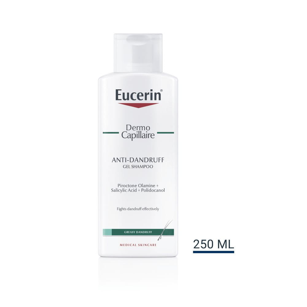 Eucerin DermoCapillaire Gélový šampón proti mastným lupinám bol vyvinutý špeciálne na mastné lupiny a pre pacientov so seborrhoickou dermatitídou. Jemne zbavuje pokožku a vlasy lepkavých žltých šupiniek a účinne redukuje tvorbu lupín. Jeho šetrné zloženie upokojuje vlasovú pokožku a zmierňuje svrbenie od prvého umytia, zatiaľ čo jeho špeciálne kondicionérové zložky dodávajú vlasom zdravý lesk, hebkosť a pružnosť.